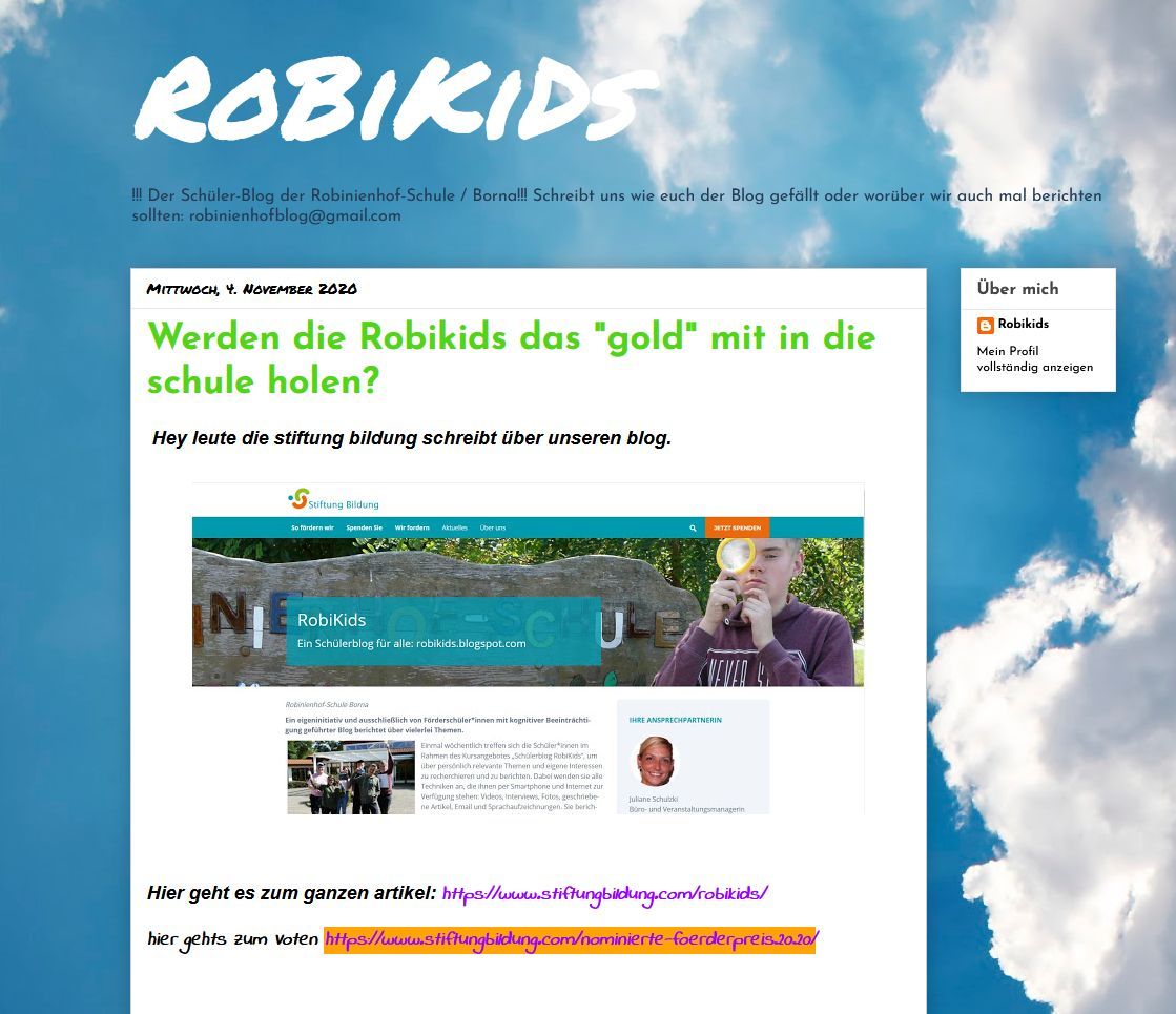 Hier ist der Link zum Artikel auf der Seite der Stiftung Bildung über unseren Blog: https://www.stiftungbildung.com/robikids/